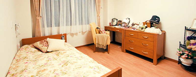 居室プライバシーと個性を尊重した個室です。備え付けのベッドや家具、暮らしやすさと心地よさにこだわりました。 -