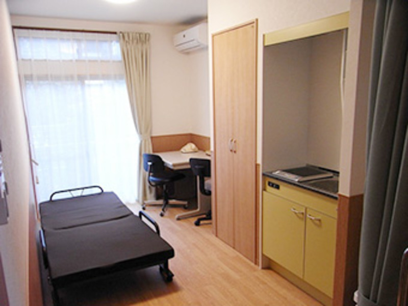 居室はプライバシーに配慮のある完全個室になっており、トイレ、洗面所兼キッチン、冷暖房、クローゼット、緊急用安心コールなどを標準装備しています。