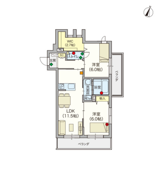 | 2LDK(60.74㎡) | |||||||||