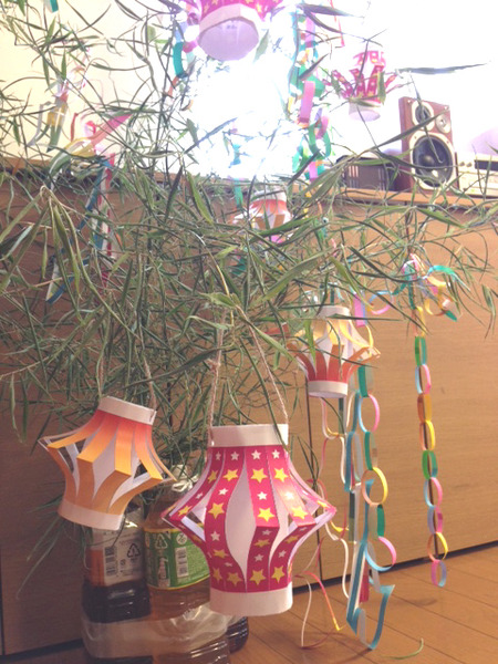 七夕上目黒つどいの家の七夕では、近隣在住のスタッフの伝手で、毎年 近所の方から「笹の枝」を ご提供いただいています。
