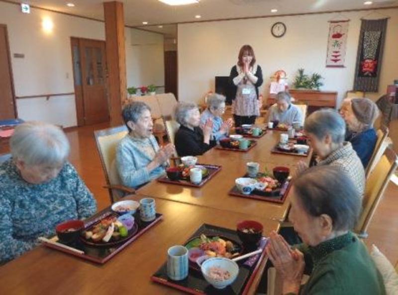 お正月ハウス長挨拶の後、 皆さんでお節料理を 「いただきま?す」