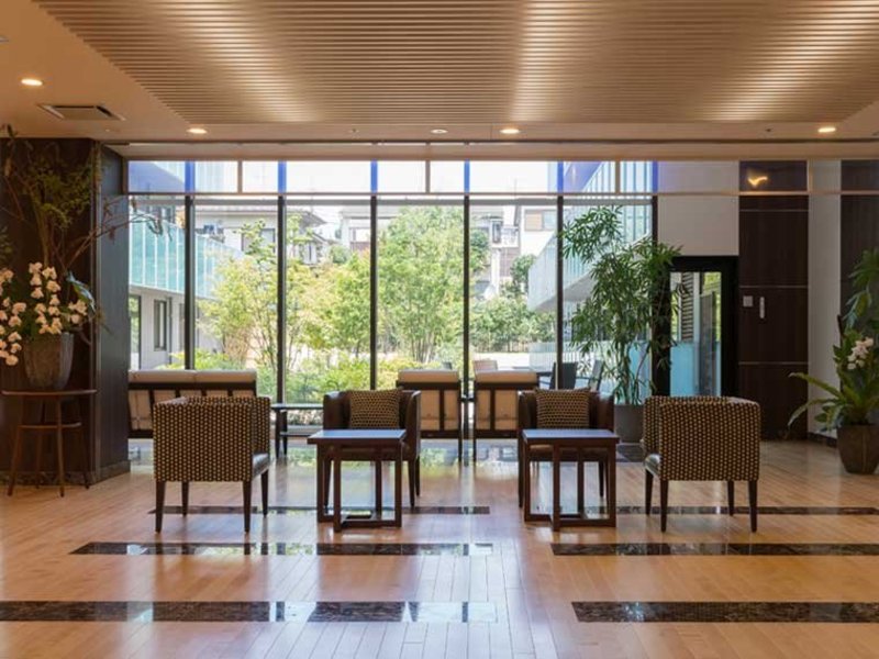 開放的な空間が広がるエントランスホール。ソファで一息ついたり、ご家族で談話をされたりと、憩いのひとときをお過ごしいただけます。
