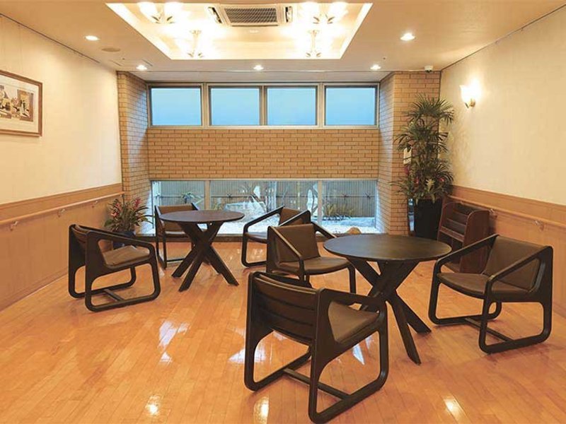 開放感あふれるエントランス。毎日のおしゃべりや面会時の団らんに、自由におくつろぎいただけます。