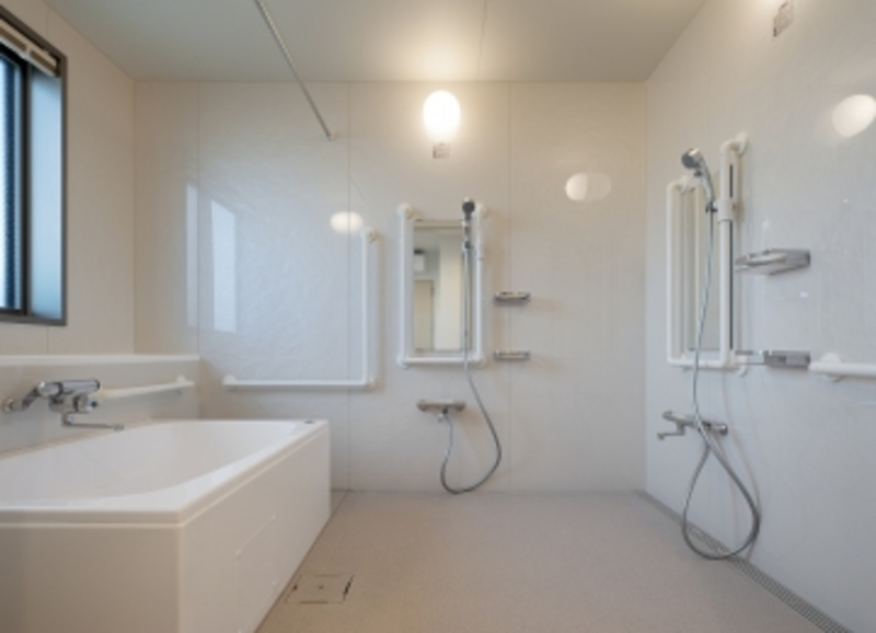 浴室は、広く明るく安全にも配慮されております。お身体の不自由な方でも安心してご入浴いただける機械浴室もございます。